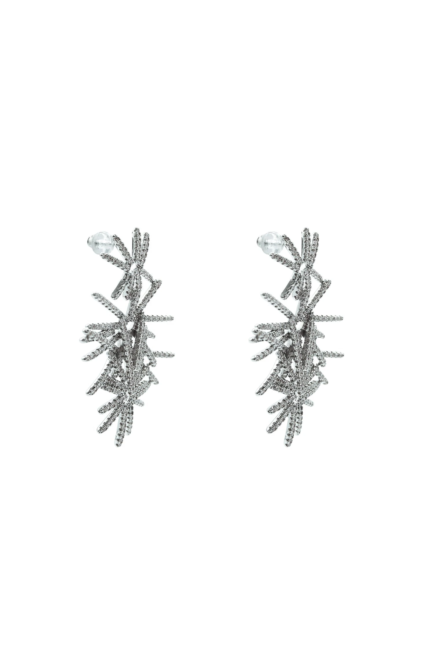 The Anais Silver Statement Earrings are the perfect addition to any look. Rendered from silver hardware and embellished with silver diamantes.