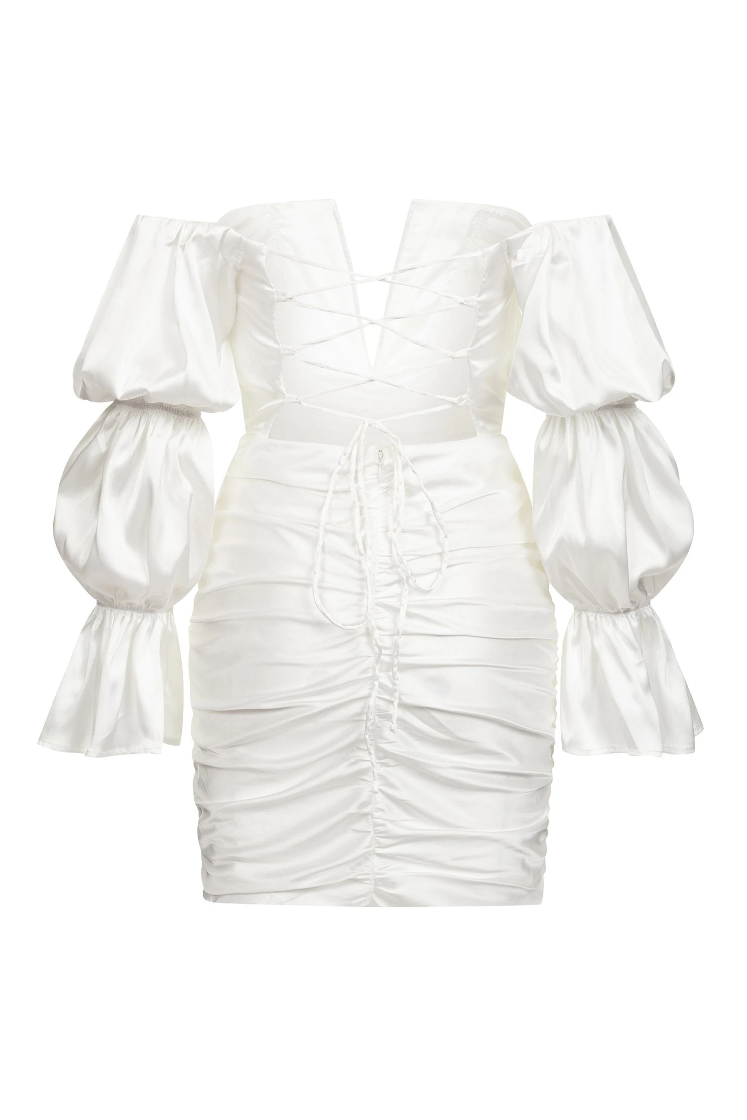 Angelic and divine, the Celo Dress brings a fashion-forward statement to your wardrobe. Featuring a stylish v-cut bustier, off-shoulder puff sleeves, and a draped skirt that is elevated with a lace-up back. Perfect for day or night events, the Celo Dress is the party dress you need.Â