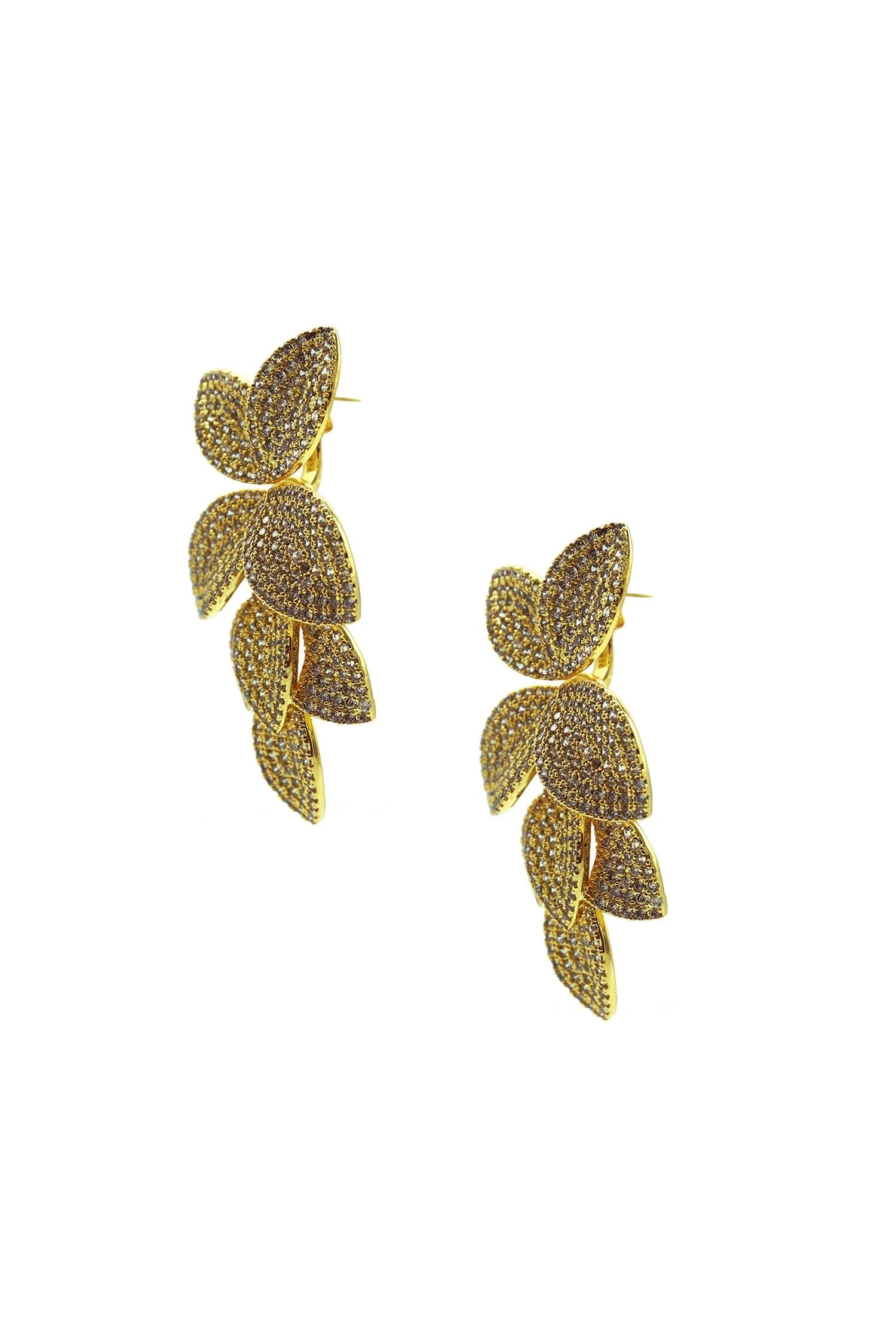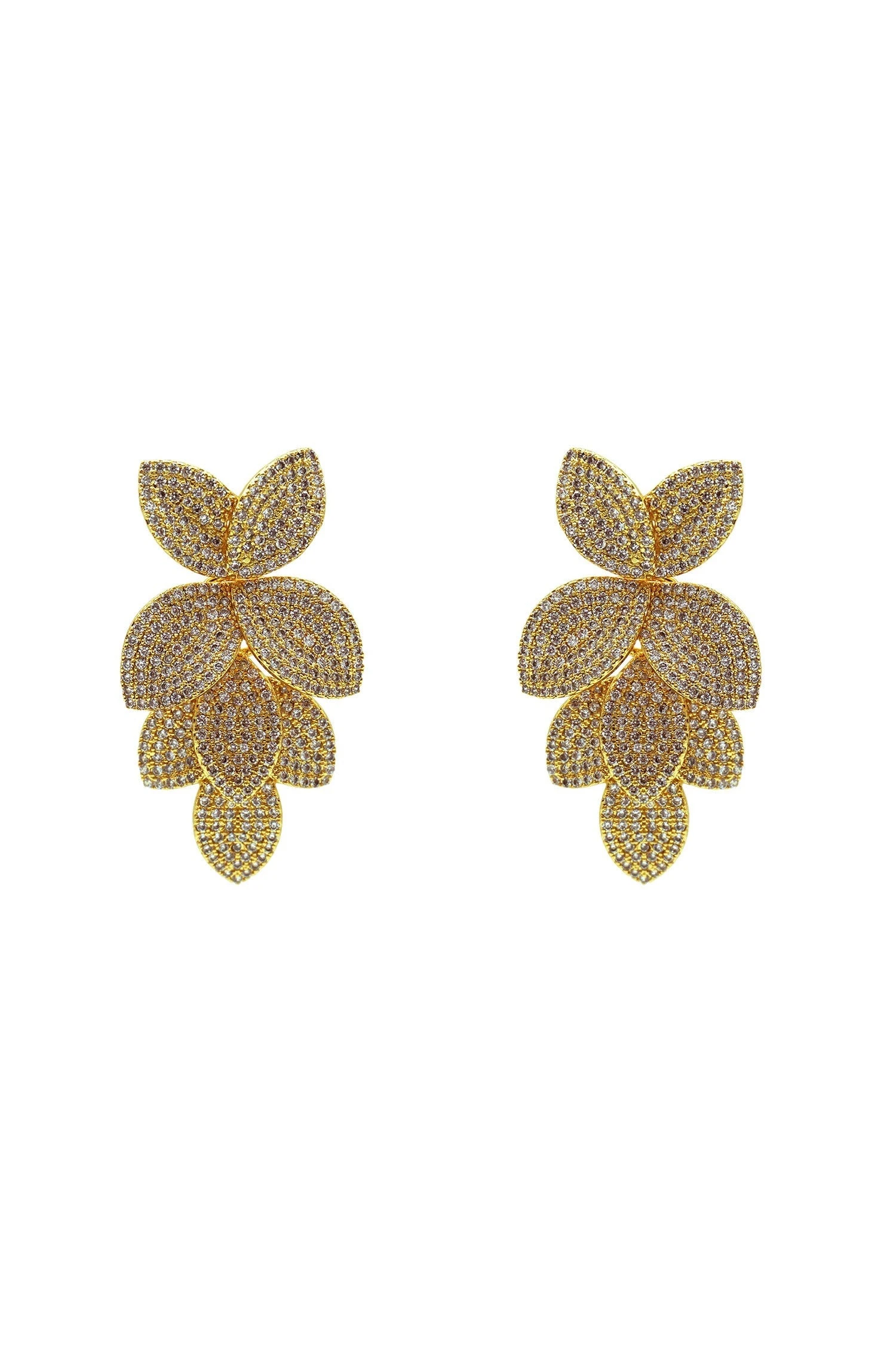 Elevate your look with the Galina Gold Embellished Earrings. Rendered from a gold hardware with silver diamantes.Â