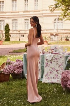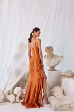 Flaunt your figure & show off some skin in this stunning emerald satin gown. Made from luxe velvety emerald & features a deep v-plunge neckline, halter neck, low back & mermaid train.Â