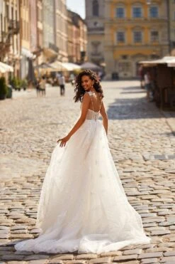 You can customise this gown to suit your personal style. Customisations include changing the neckline, changing the back, customising the gown to a different colour, adding additional length to the train and more. Please email customer care